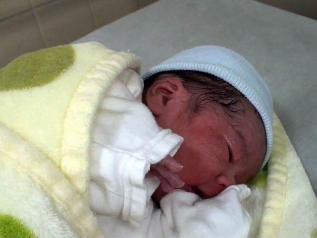 まだへその緒を切っただけで産湯にもつけていない、出てきたばかりのベビを